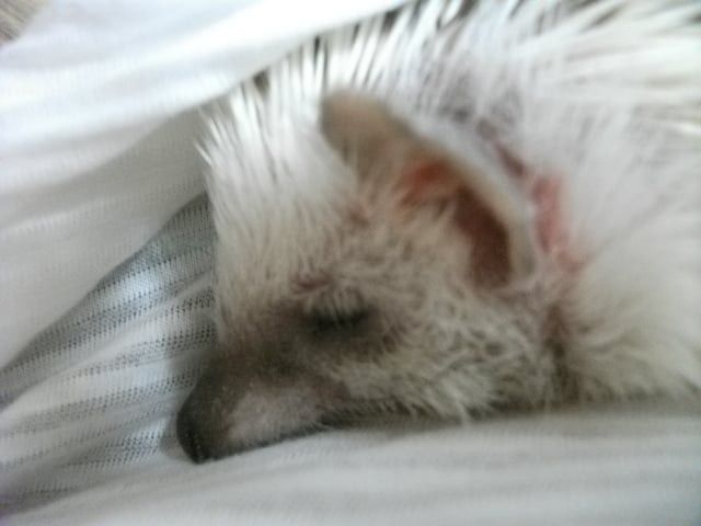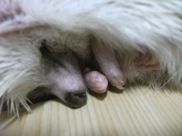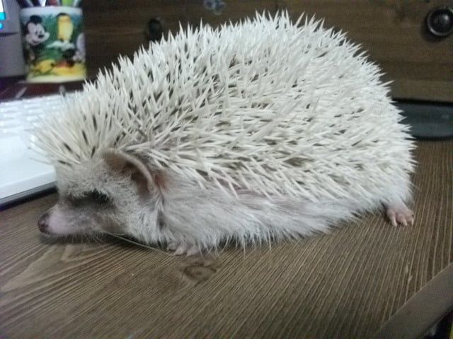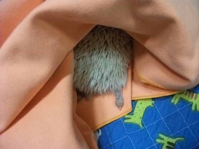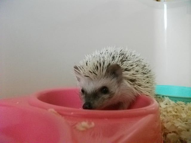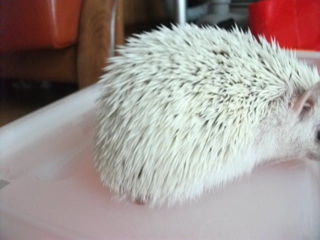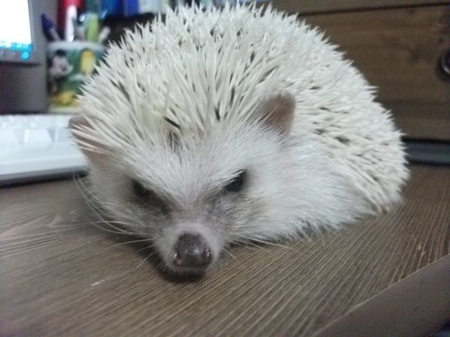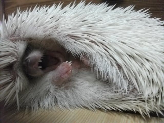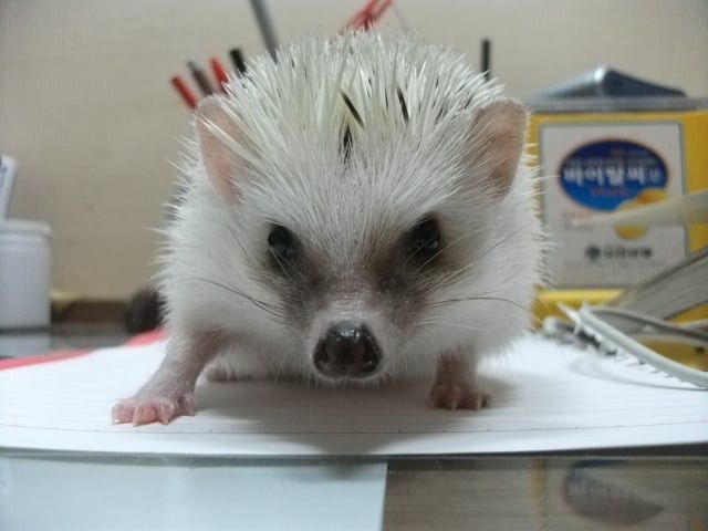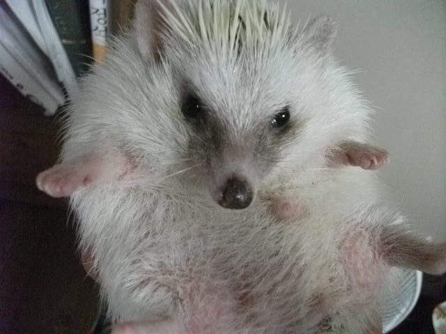손을 가져다 댔을때 일단은 ‘킹’ 소리 내면서 가시 세우고 나서는 가시갑옷 모드 풀면서 몇번 킁킁대고는 손 한번 햟음