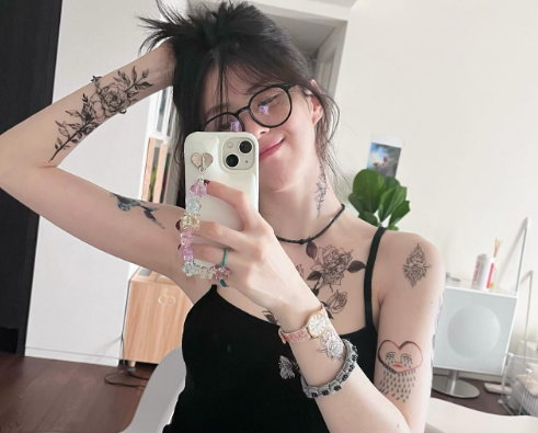 (엑스포츠뉴스 김수아 기자) 배우 한소희가 타투로 가득한 상반신을 공개했다.