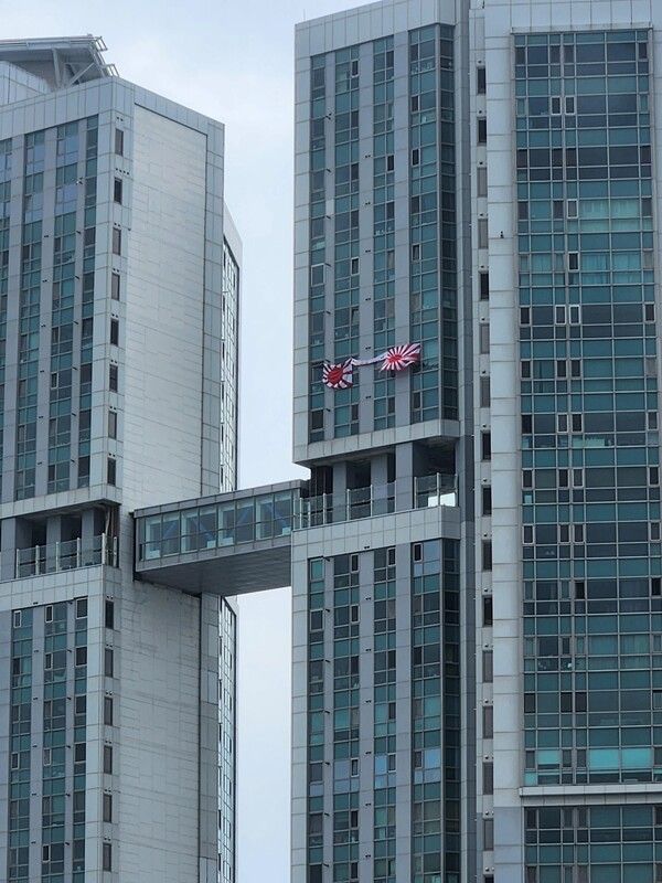 7일 부산 수영구 주민들에 따르면 해당 아파트 창문 밖에 내걸렸던 욱일기는 전날 밤늦게 철거됐다.