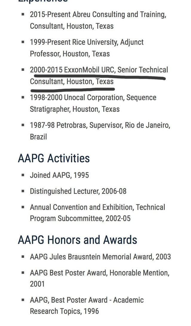 그리고 무엇보다 엑손모빌에서 15년간 수석 기술 컨설턴트로 일했다고 나와있음