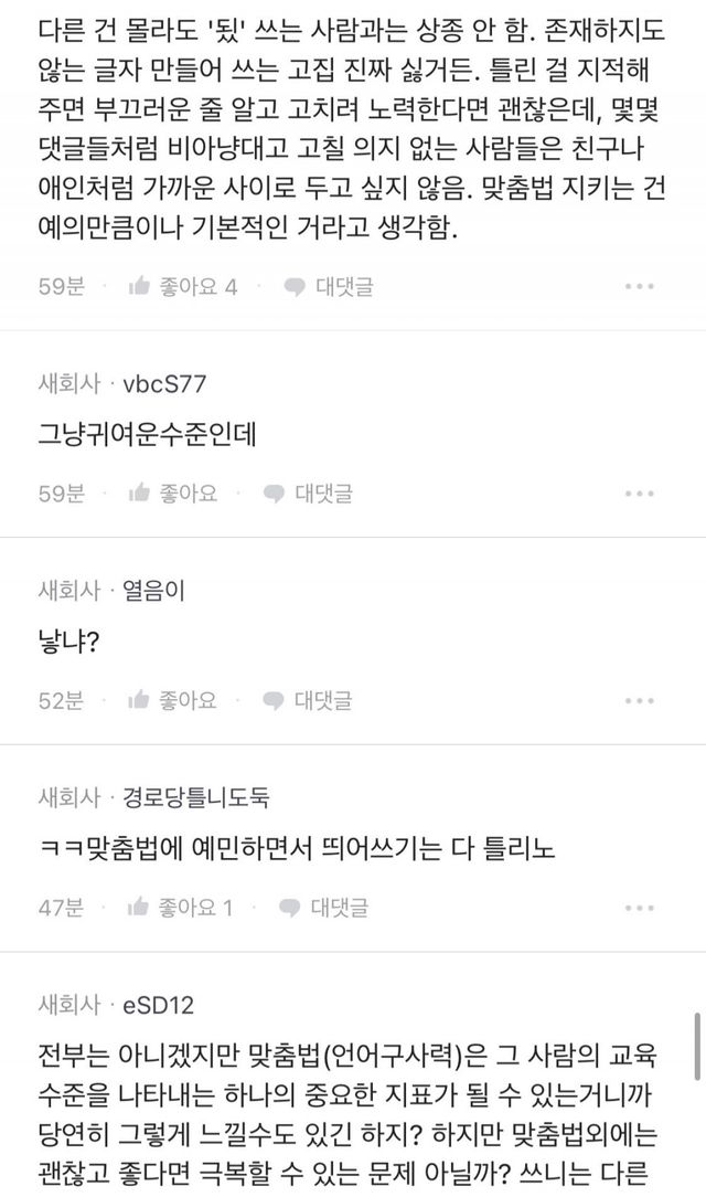 솔직히 되돼,낫낳, 안않 같은 것들은 틀리면 좀 멍청해보이긴 함.