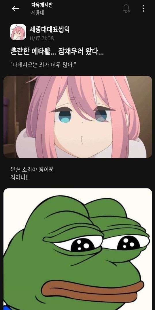 혼란스러운 에타를 잠재우는 세종대 대표 씹덕!!!