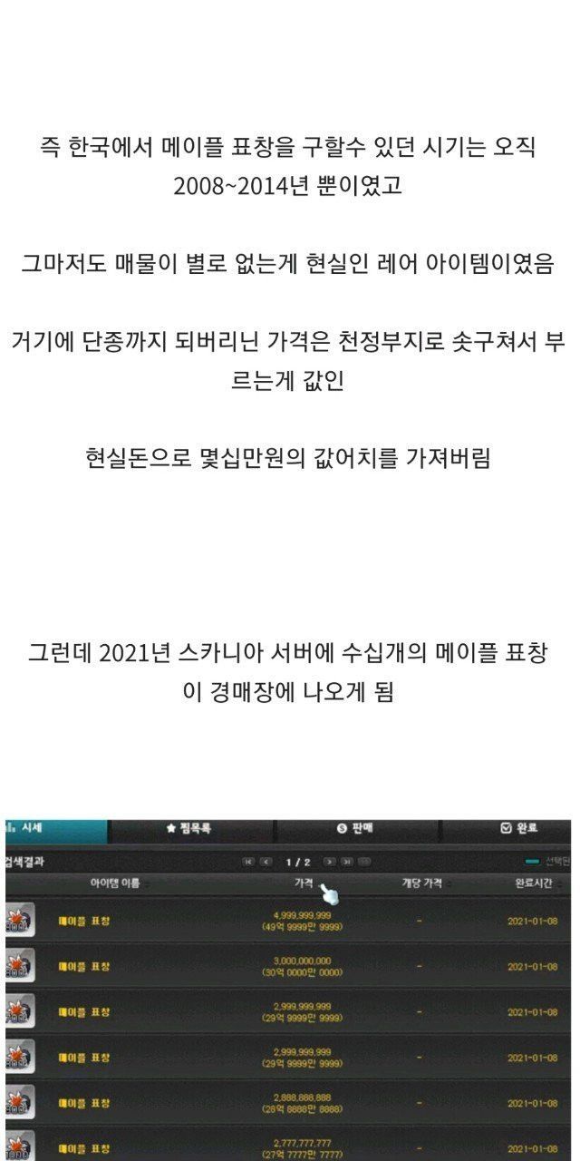 1. 이제 못 구한다고 알려진 메이플 표창 매물이 갑자기 막 올라옴