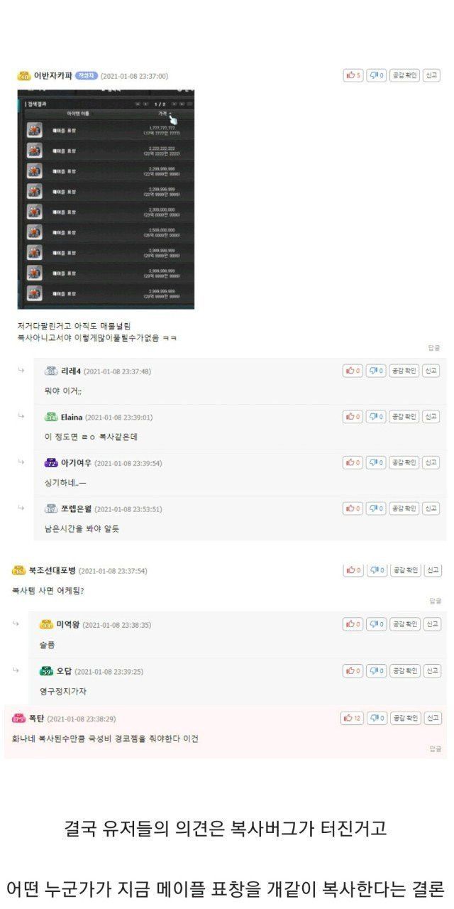 3. 다 샀는데 매물이 계속 올라와서 이거 아이템 복사 버그다! 의혹