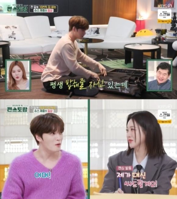 이어 "누가 짐 싸줄 사람 없나. 나 대신에 짐 싸 줄 사람이 생기면 평생 밥해줄 자신이 있는데"라고 말했고, 영상을 보던 홍지윤은 "제가 대신 싸드릴게요"라고 팬심을 드러냈다.