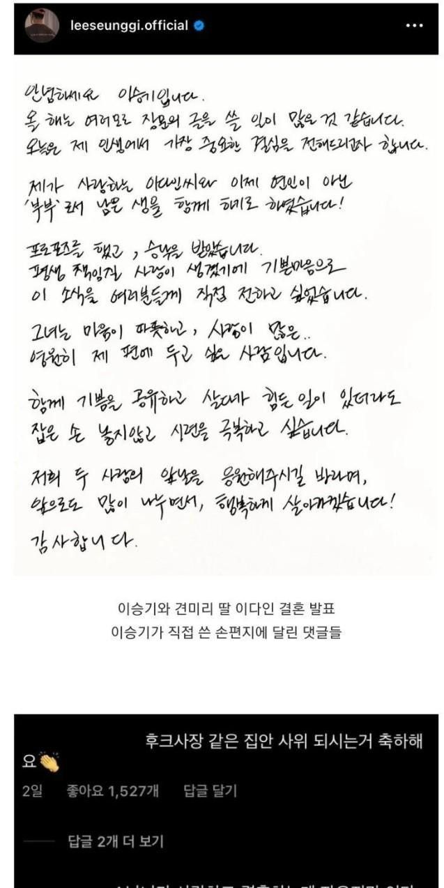 결혼하는 이승기.. 인스타 댓글 근황 …