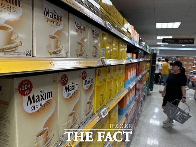 지난 7일 서울 은평구 한 대형마트에서 소비자들이 맥심 커피믹스 제품군을 둘러보고 있다. /이중삼 기자