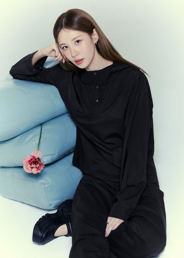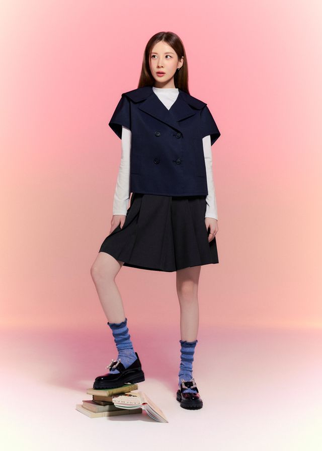 청량한 블루 니트로 완성한 숲속의 요정 무드, 에스파 윈터의 내추럴 룩