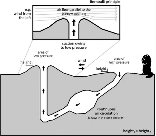 프레리 독은 집을 지을때는 굴 양쪽에 고저차를 두고 만듦.