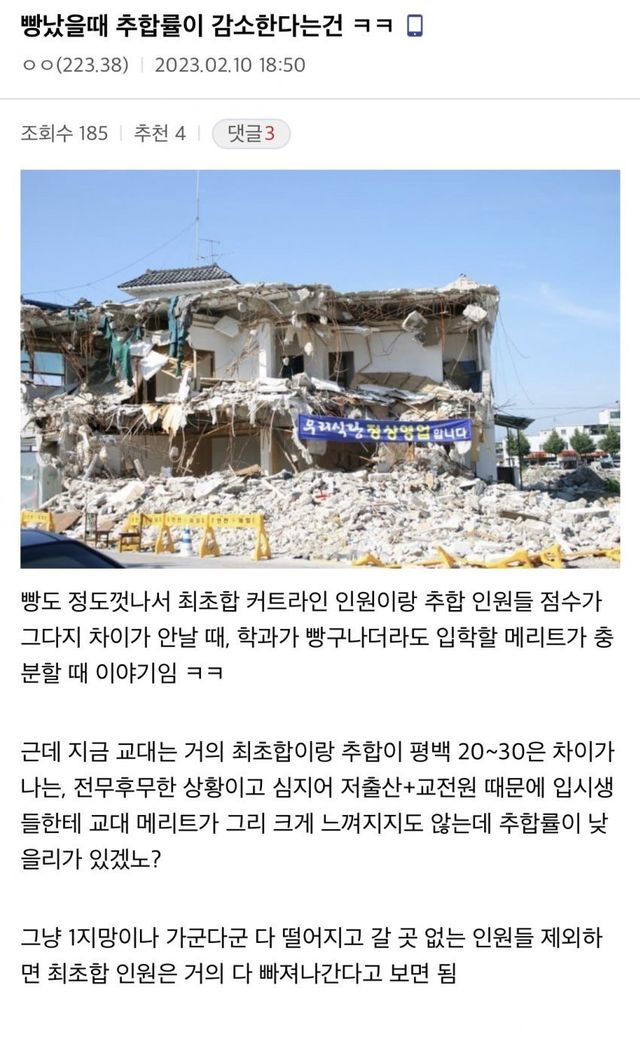 저출산, 교전원(일반인도 올수 있음),교대 정원 동결등으로 입결이 수직낙하하는중ㅋㅋㅋ
