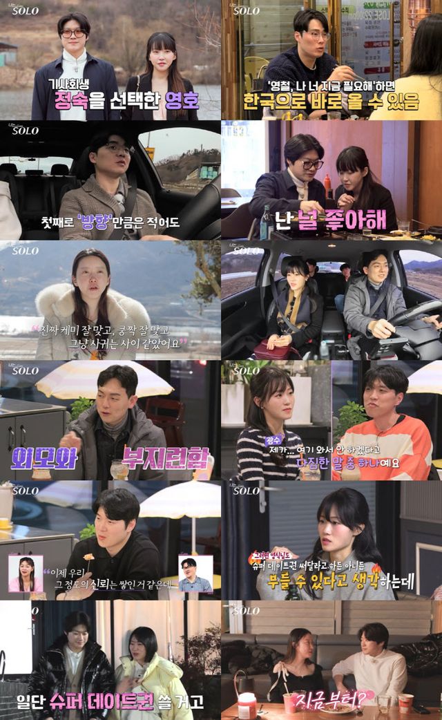 정숙과 영호는 계속해서 좋은 감정을 나누고 있다. 이날 방송에서는 연인 같은 이자카야 데이트를 하는 두 사람의 모습이 담겼다. 정숙은 “우리 숙소 들어가지 말자”라고 플러팅을 하고 영호의 귀에다가 “네 냄새 맡을 수 있어서 좋아”라고 마음을 표현했다. 쉴 틈 없는 정숙의 애정 공세에 영호는 물론 3MC까지 아찔해졌고, 데이트를 마친 뒤 정숙은 제작진과의 인터뷰에서 “그냥 사귀는 사이 같았다. (솔로나라에서) 데이트를 못 하다가 하게 되니까 더 불타오르는 것 같다”고 솔직하게 밝혔다.