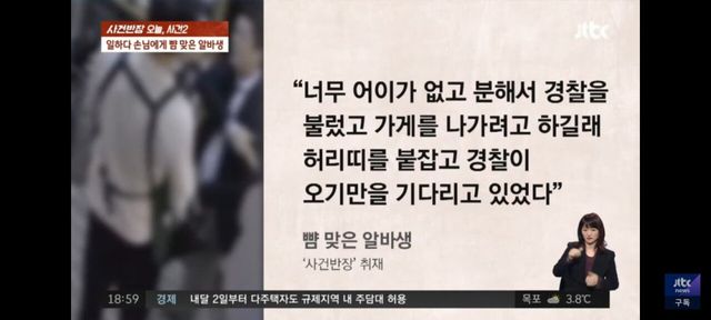 손님에게 뺨 맞은 알바생 …