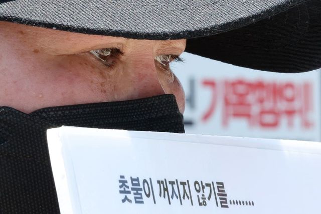 4일 오전 서울 용산구 전쟁기념관 앞에서 열린 육군 12사단 훈련병 가혹행위 사망 사건 규탄 및 진상규명 촉구 기자회견에서 군에 입대한 자녀를 둔 참가자들이 눈물을 흘리고 있다. 군인권센터와 아프지 말고 다치지 말고 무사귀환 부모연대는 12사단 사건 가해자를 엄단하고 진상규명에 착수할 것을 종부와 경찰에 촉구했다. / 뉴스1
