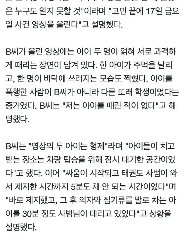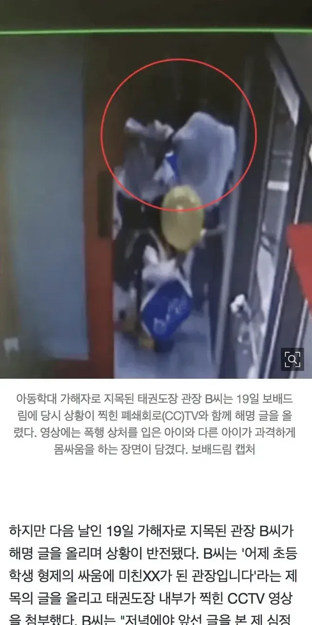 다음날 태권도 관장이 본인이 폭행한게 아니라 본인들끼리 치고박고 싸운거라고 CCTV 영상 공개