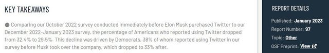 일론 머스크의 트위터 인수 이후 미국내 트위터 이용률은 9% 감소함