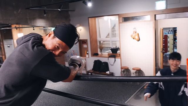 강훈이 복싱 배우고 싶다고 해서 자기가 다니는 체육관에 데리고 옴