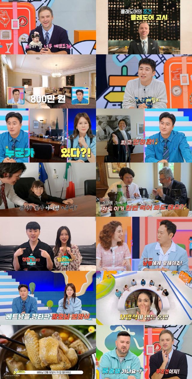 이날 모처럼 스튜디오를 찾은 기욤 패트리는 딸 레아를 육아 중인 근황을 전했다. 안정환은 “표정이 벌써 ‘딸 바보’다”라며 웃었고, 송진우 또한 “딸은 인생에서 필수!”이라며 ‘딸 바보’ 아빠로 깊은 공감을 보냈다. 뒤이어, 캐나다 퀘벡주에 거주 중인 김예원X맥스 가족이 처음으로 등장해 스튜디오 출연진들과 인사를 나눴다. 이날 김예원은 두 아들을 데리고, 남편 맥스가 컨시어지로 일하고 있는 퀘벡주의 최고급 호텔을 방문했다. 100년의 역사를 자랑하는 유명 호텔에서 근무 중인 맥스는 컨시어지 중에서도 최고로 꼽히는 ‘클레도어’로, 서류 전형과 필기시험은 물론 상황별 여행 루트 시나리오와 시크릿 전화 인터뷰 그리고 면접으로 이뤄진 어려운 시험을 1등으로 통과했다고 해 놀라움을 안겼다.
