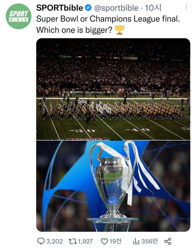 세계에서 슈퍼볼과 챔피언스리그 결승전 중 더 빅경기는?