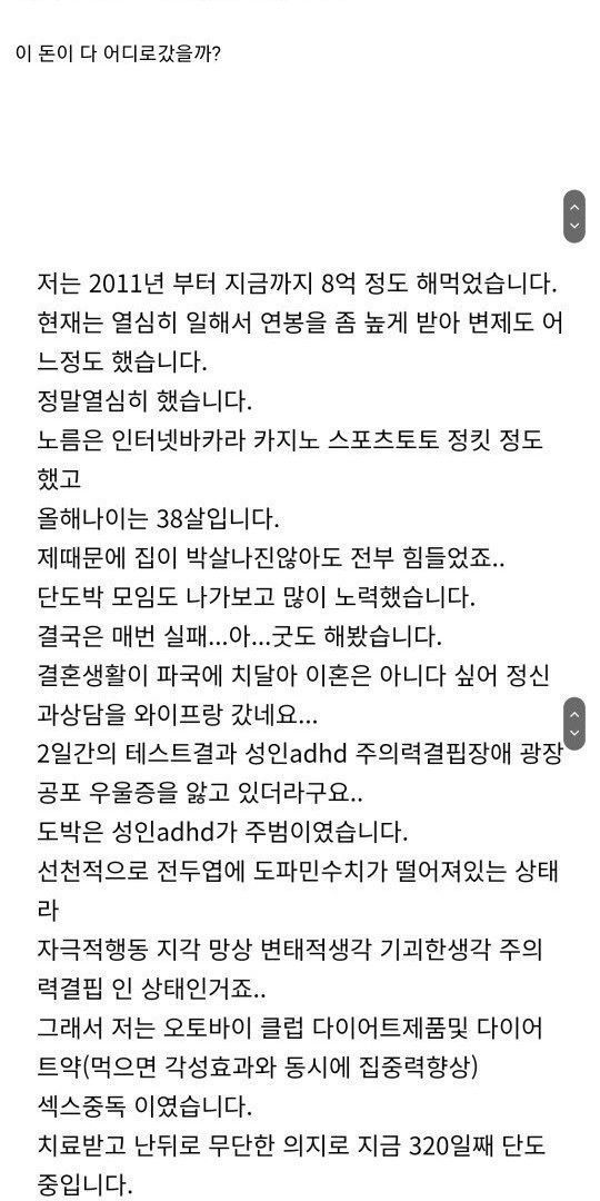도박 치료 받고 1년 참았으나 다시 시작