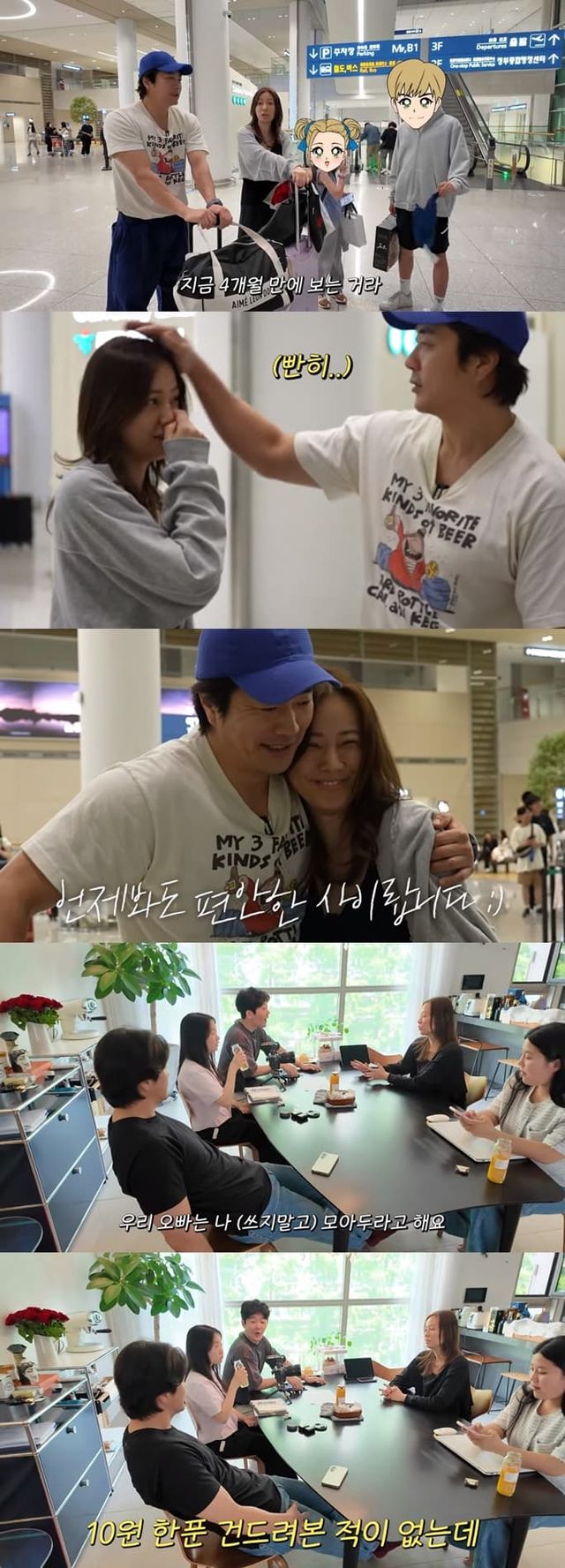 마침내 손태영과 자녀들이 공항에 도착하자, 권상우는 함박웃음을 지으며 달려갔다.