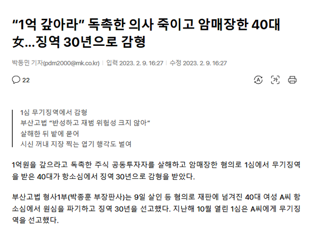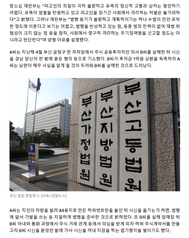1심 무기징역, 2심은 초범이고 반성하고 있다는 이유로 30년으로 감형해줌