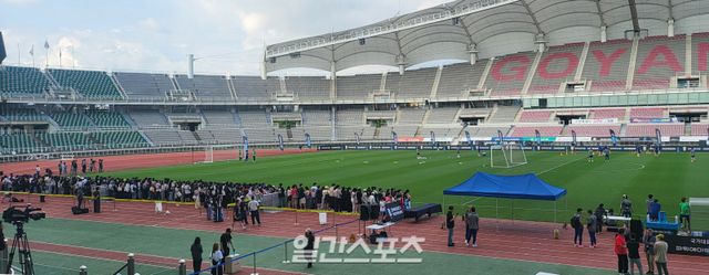 김도훈 임시 감독이 이끄는 축구 대표팀은 8일 오후 4시 30분 고양종합운동장에서 오픈 트레이닝을 개최했다. 지난 3월 황선홍 임시 감독이 이끌 당시에는 2023 아시아축구연맹(AFC) 아시안컵 탈락 등 분위기를 고려해 취소됐지만, 이번에는 다시 팬들에게 대표팀 훈련을 공개하는 행사를 재개했다.