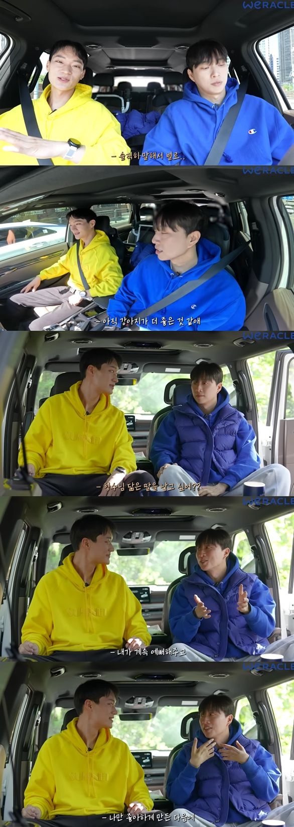 박위는 "나는 사실 솔직히 말하면 아직 강아지가 더 좋다"고 솔직히 답하자 박지우는 "때가 되면 아기가 점점 예뻐 보인다. 그냥 길가는 아기들이 예뻐 보이기 시작해"라며 달라진 점을 이야기했다.