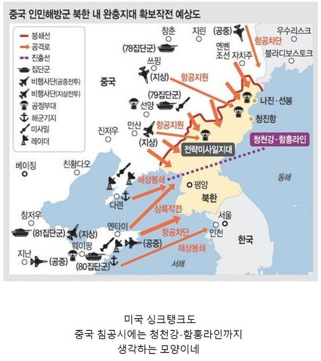 북한이 알아서 붕괴해버리면 북한땅 반은 어거지로 짱깨가 잡술예정