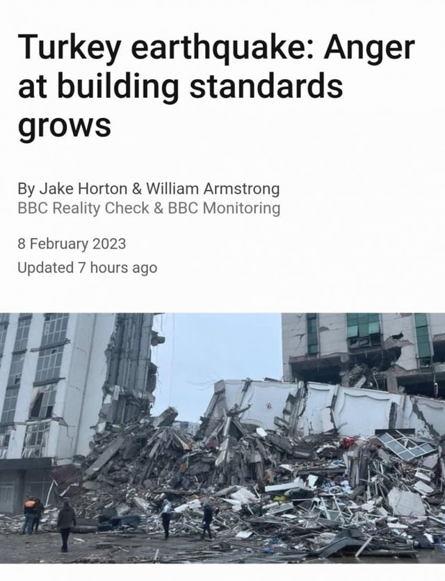“최신 지진 규정을 준수하여 완공되었다” 라며 홍보했지만 결국 붕괴함