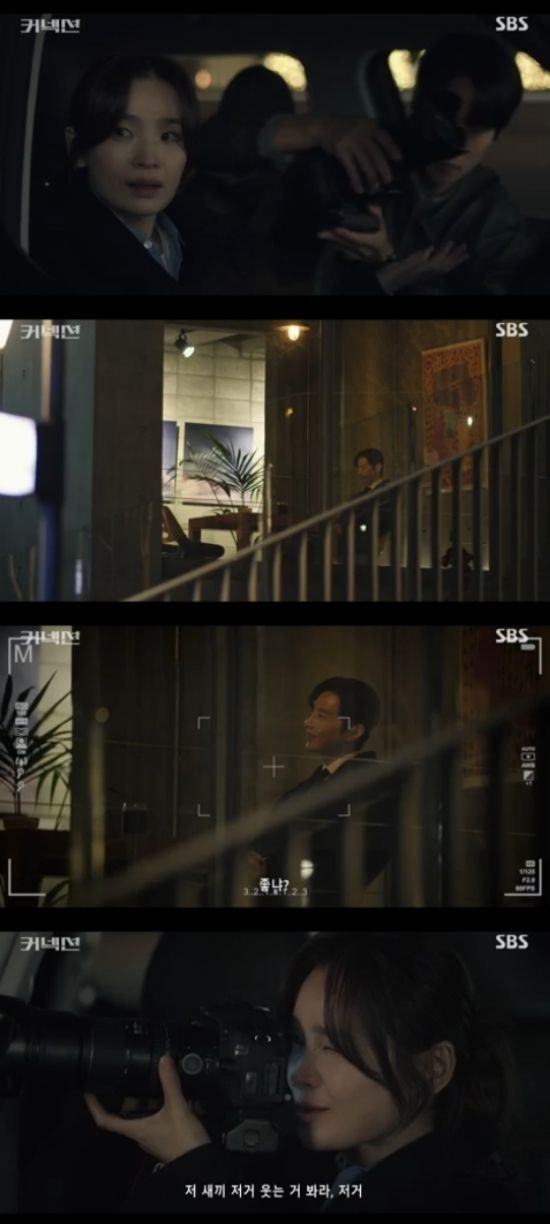 8일 방송된 SBS 금토드라마 '커넥션' 6회에서는 박태진(권율 분)과 최지연(정유민)의 사이를 의심한 오윤진(전미도)이 두 사람을 미행하는 모습이 그려졌다.