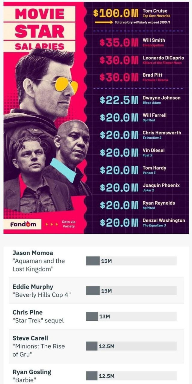 톰크루즈 탑건 매버릭으로 1억 달러. 압도적 1위