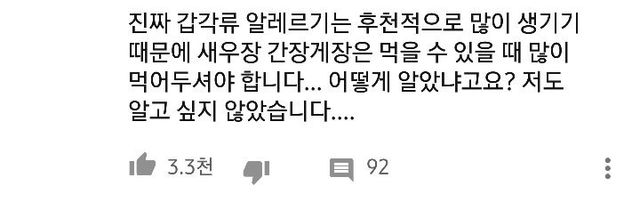 갑각류 알레르기 후천적으로 생기는 경우가 굉장히 많다고 함