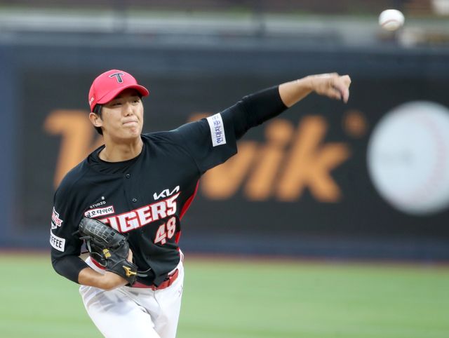 팔꿈치 수술로 시즌 아웃된 왼손 투수 이의리. IS 포토