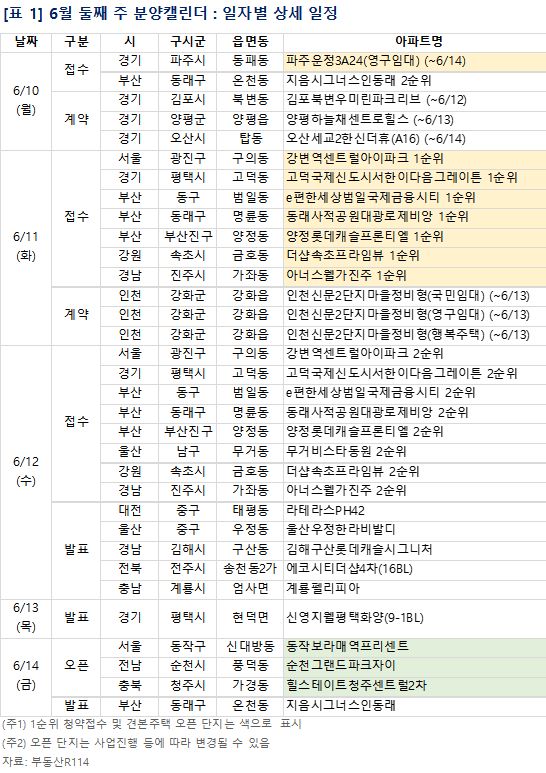 9일 부동산R114에 따르면 6월 2주차에는 서울 광진구 구의동 '강변역센트럴아이파크', 경기 평택시 고덕동 '고덕국제신도시서한이다음그레이튼', 부산 동구 범일동 'e편한세상범일국제금융시티' 등에서 청약을 진행한다.