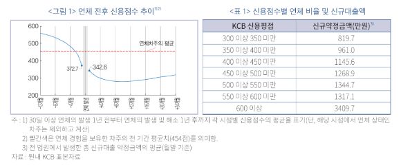 신용점수가 높으면 신규 대출 금액도 높아진다. 예를 들어 평균 343점에서 평균 373점으로 오르면 약 141만원을 더 대출받을 수 있다.