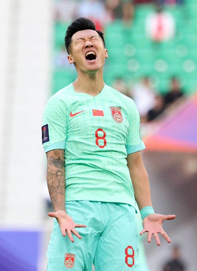 중국 쉬신이 17일(현지시간) 카타르 도하 알투마마 스타디움에서 열린 2023 아시아축구연맹(AFC) 카타르 아시안컵 조별리그 A조 중국과 레바논의 경기에서 중거리슛이 벗어나자 아쉬워하고 있다. 2023.1.17/뉴스1