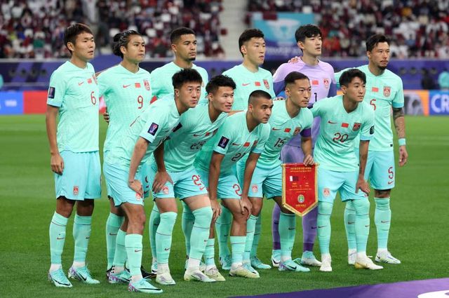 중국 베스트일레븐이 22일(현지시간) 카타르 도하 칼리파 인터내셔널 스타디움에서 열린 2023 아시아축구연맹(AFC) 카타르 아시안컵 조별리그 A조 조별리그 3차전 카타르와 중국의 경기에서 팀포토를 찍고 있다. 2024.1.23/뉴스1