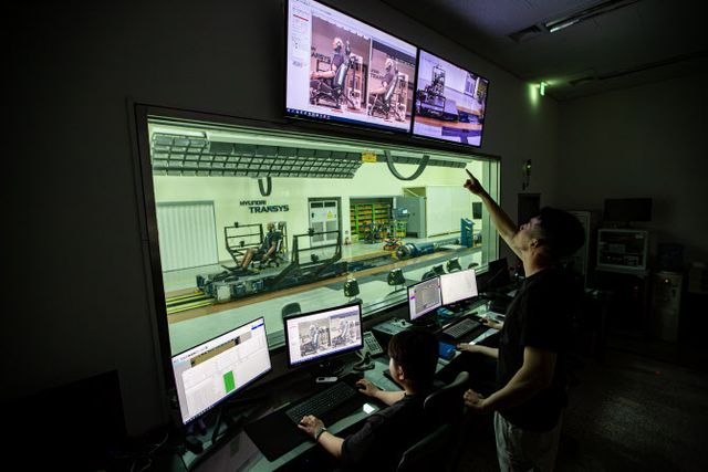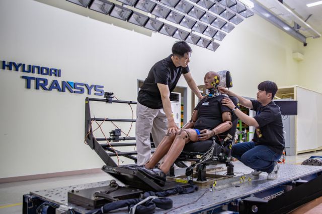 차량이 충돌했을 때 시트의 안전성을 평가하는 슬레드(SLED) 시험도 볼 수 있었다. 이날 시험실에서는 차량 충돌시험에 쓰이는 인체모형(더미)을 시트에 앉힌 뒤 시속 약 80㎞로 달리는 차량이 충돌했을 때의 상황을 재현하는 테스트가 진행됐다. 연구원이 작동 버튼을 누르자 시트에 시속 약 41㎞로 충돌이 가해지면서 시트와 더미가 순식간에 뒤로 넘어갔다가 돌아왔다. 이처럼 시트에 가해지는 충격과 인체에 미치는 상해를 분석해 탑승자의 안전을 위한 설계에 활용하고 있다는 설명이다.