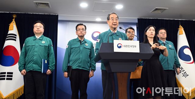 아시아투데이 박성일 기자 = 한덕수 국무총리가 9일 오후 서울 종로구 정부서울청사 합동 브리핑룸에서 열린 의료개혁 및 의료계 집단행동 관련 브리핑을 하고 있다.