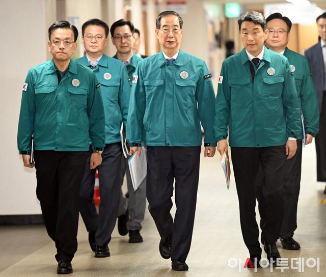 아시아투데이 박성일 기자 = 한덕수 국무총리가 9일 오후 서울 종로구 정부서울청사 합동 브리핑룸에서 열린 의료개혁 및 의료계 집단행동 관련 브리핑에 참석하고 있다.