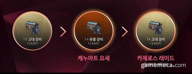 함께 T4 장비를 습득할 수 있는 전투 콘텐츠 ‘케누아트 요새’가 등장한다. 케누아트 요새는 아이템 레벨 1620부터 입장할 수 있으며, T3 고대장비로 1620을 달성해 T4 유물 장비 파밍 후 T3 장비 강화 레벨을 계승해 아이템 레벨을 1640으로 올리면 된다. 이를 통해 카제로스 레이드 1막에서 T4 고대 장비를 파밍하는 루트를 따르는 방식이다. 장비와 함께 어빌리티 스톤, 악세서리, 팔찌, 보석 등도 개편된다.