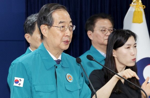 한 총리는 이날 정부서울청사에서 대국민 기자회견을 열어 "여전히 일부 의료계 인사들과 의사단체가 국민의 생명을 담보로 추가적 불법 집단행동을 거론하고 있어 깊은 유감"이라고 밝혔다.