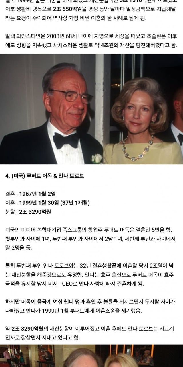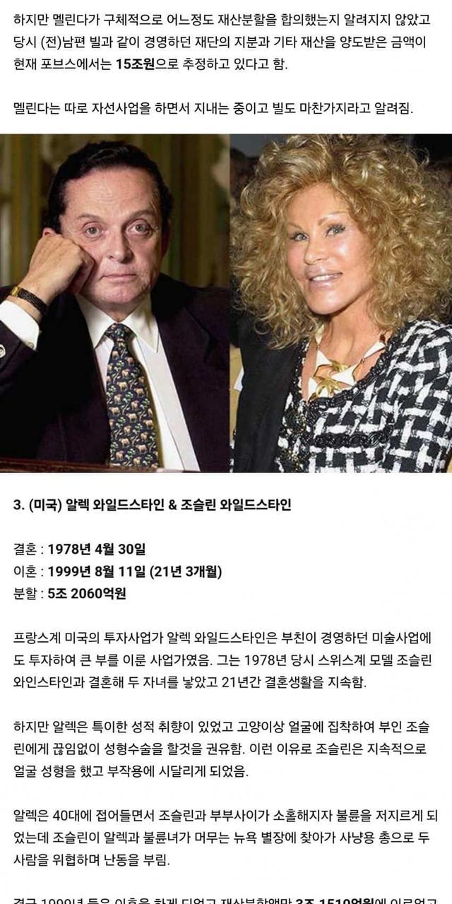 이혼으로 많은 재산을 분할받은 여성들의 순위는 재산 규모에 따라 정해집니다. 이러한 리스트는 일반적으로 유명인이나 고액 자산가를 중심으로 작성되며, 대중에게 큰 호기심을 자아냅니다. 이러한 정보는 대중의 관심을 끌며, 이혼 관련 재산 분할 문제의 심각성을 부각시킵니다.