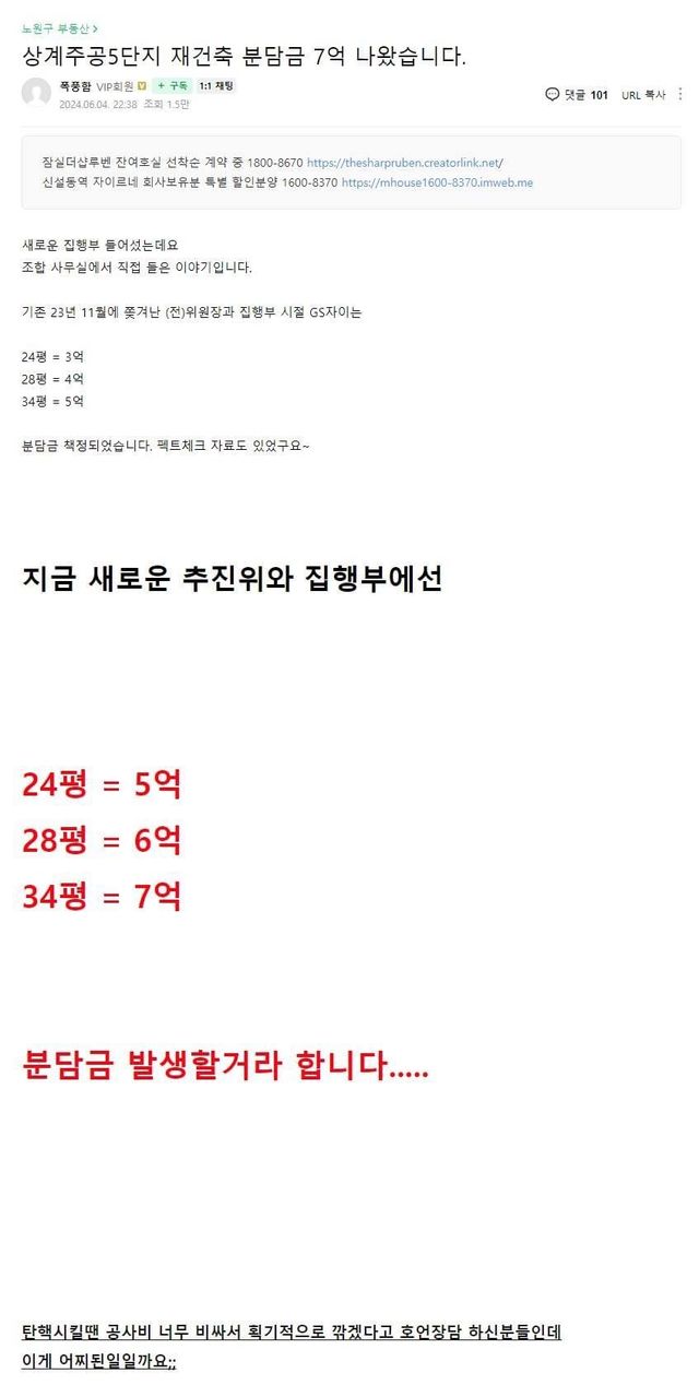 조합 만들면 현재 집값 매몰 + 쌩돈 5억 추가(24평기준)---> 총비용 9억7천