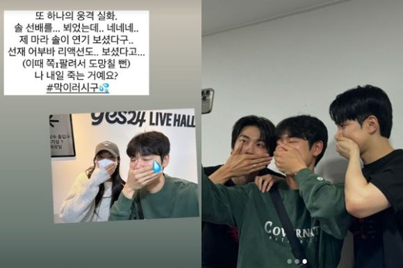 김혜윤은 엔플라잉의 리더이자 tvN 드라마 '선재 업고 튀어'에서 호흡을 맞춘 이승협을 응원하기 위해 7일 공연을 관람했다. 유튜버 승헌쓰는 이날 자신의 인스타그램에 "솔 선배를 뵈었는데, 제 마라 솔이 연기 보셨다고. 선재 어부바 리액션도 보셨다고"라는 글과 함께 김혜윤과 찍은 사진을 게재했다.