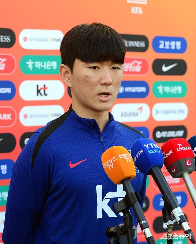 9일 경기도 고양종합운동장에서 ‘2026 북중미 월드컵’ 아시아 2차예선 중국과의 경기를 앞두고 한국 축구대표팀이 훈련을 가졌다. 훈련 전 축구대표팀 황인범이 인터뷰를 하고 있다.