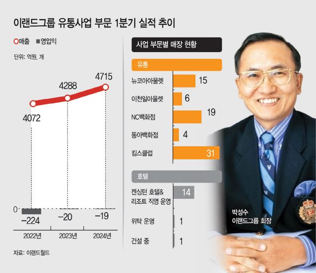 9일 유통업계에 따르면 올해 1분기 이랜드그룹의 유통부문 매출액은 4715억원, 영업손실 19억원을 기록했다. 매출액과 영업손실 모두 2022년 1분기(4072억원, -224억원)와 지난해 1분기(4288억원, -20억원)에 비해 개선되고 있어 기대감이 큰 상황이다.