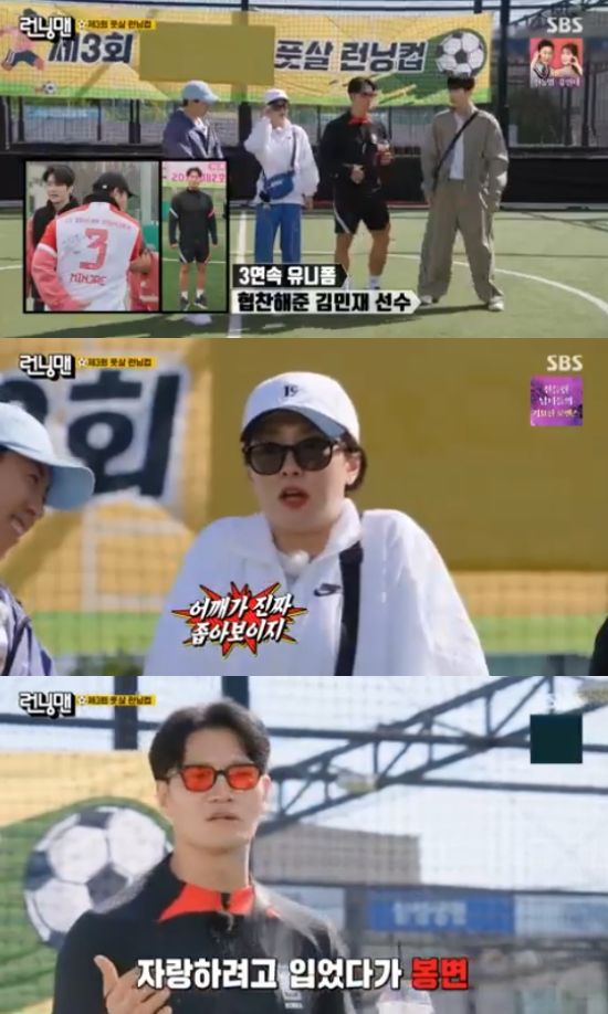 이에 김종국은 "'풋살 런닝컵' 방송을 보고 김민재 선수가 다음 경기 때 입으라고 줬는데 조금 작다"고 웃으면서 "김민재 선수가 매번 '풋살 런닝컵'을 지켜보고 계신다"면서 친분을 자랑했다.