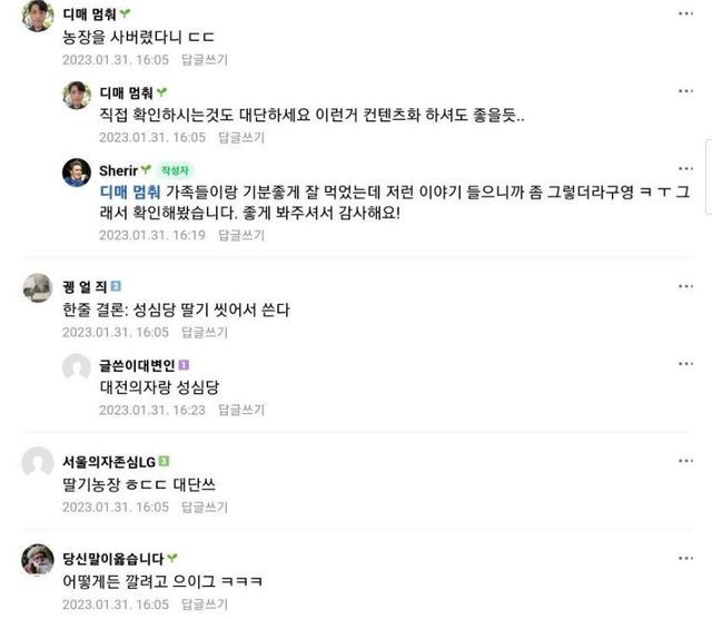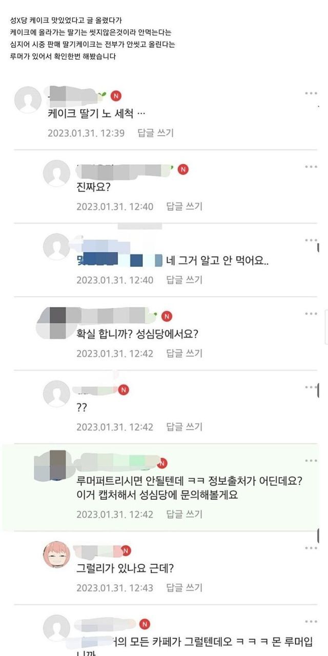 성심당은 아예 농장을 사버려서 딸기재배 중이며 거기서 세척과정이 있고 성심당에서 알콜소독도 한다고