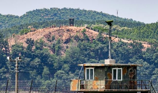 정부가 북한이 오물 풍선 살포를 재개한데 대한 대응 조치로 대북 확성기를 설치하고 방송을 실시하기로 한 9일 파주 접경지역에 북한군 초소가 보이고 있다. / 뉴스1